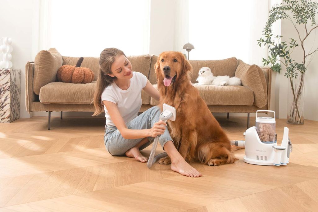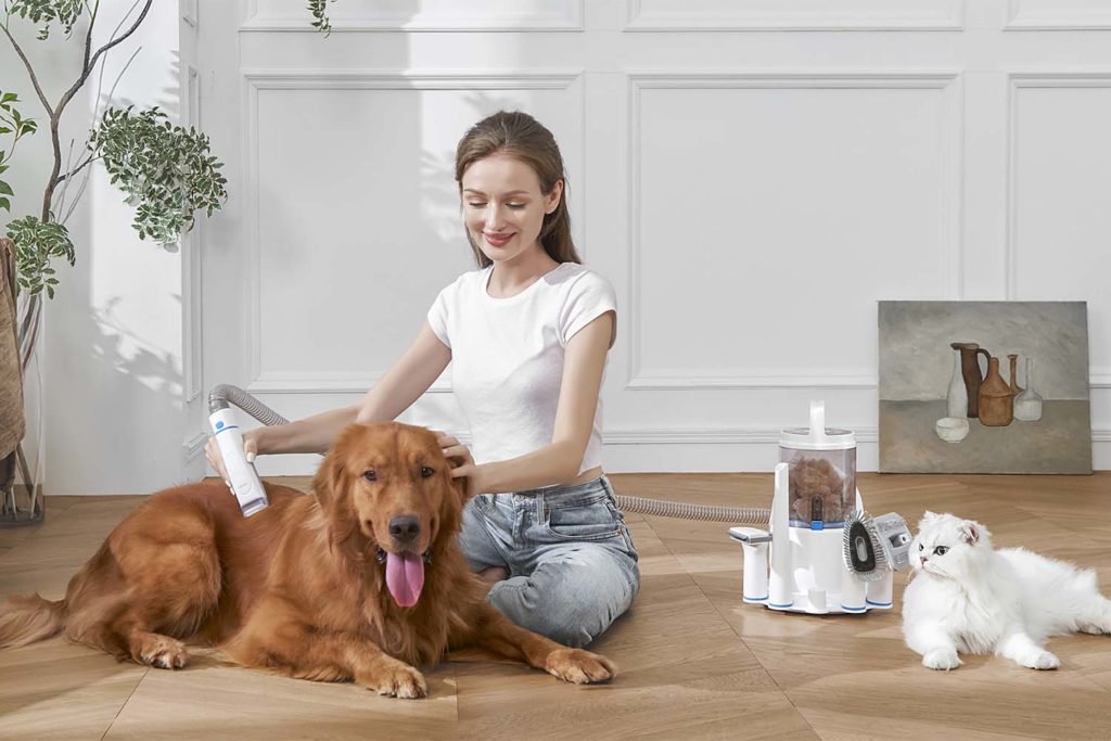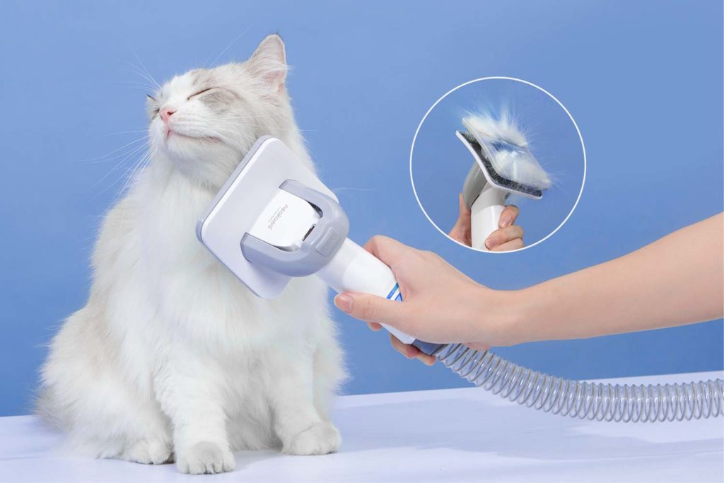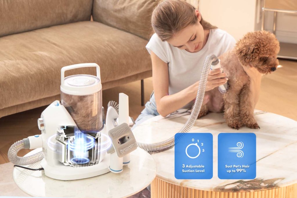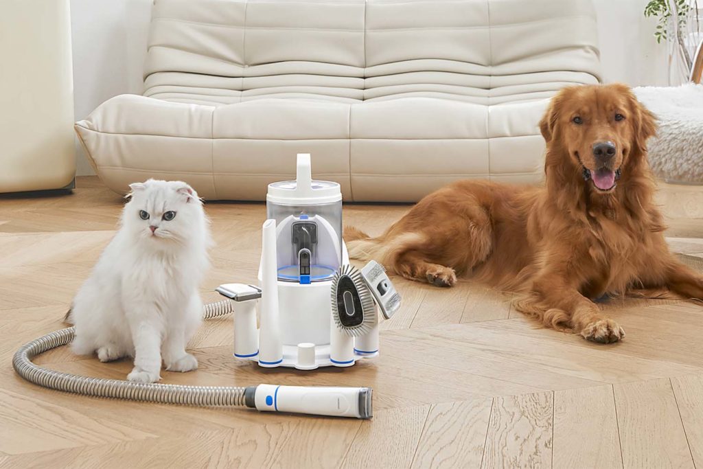 Sada s vysavačem obsahuje pět různých nástavců. Kartáč na péči o srst, trimovací hřeben DeShedding, elektrický střihací strojek, štěrbinovou a kartáčovou hubici pro snadný úklid.